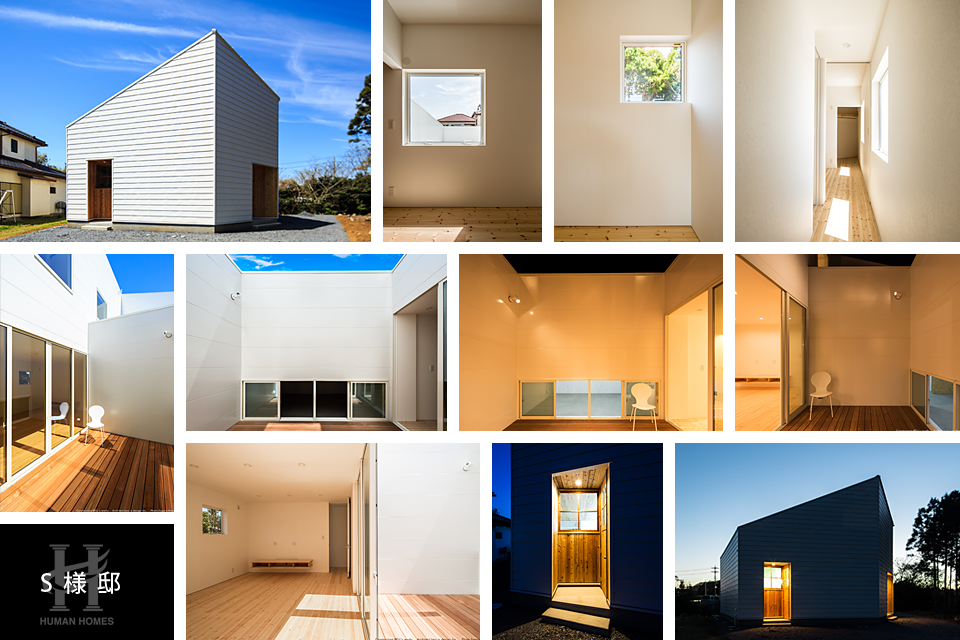 よくある切妻屋根の家も、SIMPLE NOTEではこのような形になります。一見変わったこの形の外観は、合理的な家を生み出し、大きな窓のないシンプルな外観とは対照的に、すべての部屋に中庭からの光が入り込みます。