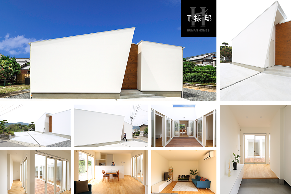 外から見て間取りのわからないこの家は、人の目を気にせずに家の中にいても開放的な気分を感じることができます。いろいろな土地や環境に合わせた家族の必要な形に対応します。